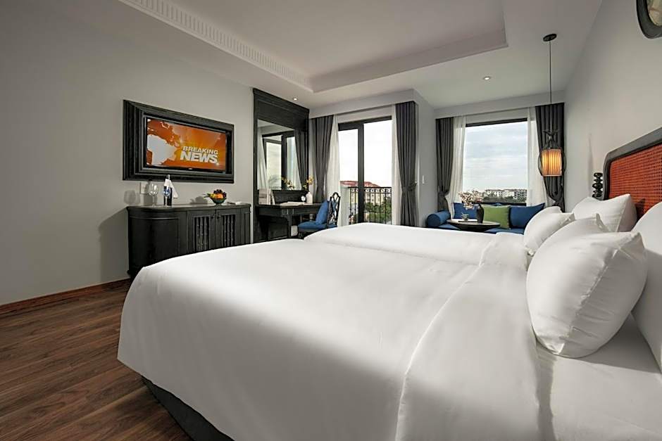 The spacious twin/double room features air conditioning, soundproof walls, a balcony with river views as well as a private bathroom boasting a walk-in shower.